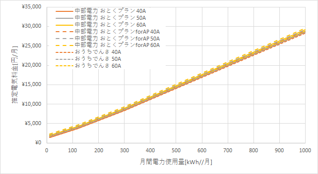 ➡中部電力|おとくプラン、おとくプランforAPと新電力16社の料金比較